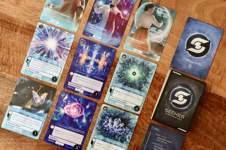 Además de su temática, lo que hace tan especial a Seeker Chronicles es su sistema de gestión de recursos, donde cada carta es un recurso, pero solo hasta que uses sus poderes. Para ganar, tendrás que encontrar el equilibrio perfecto entre tu capacidad y tu fuerza en el tablero. Esto da lugar a una rica estrategia única en este juego.