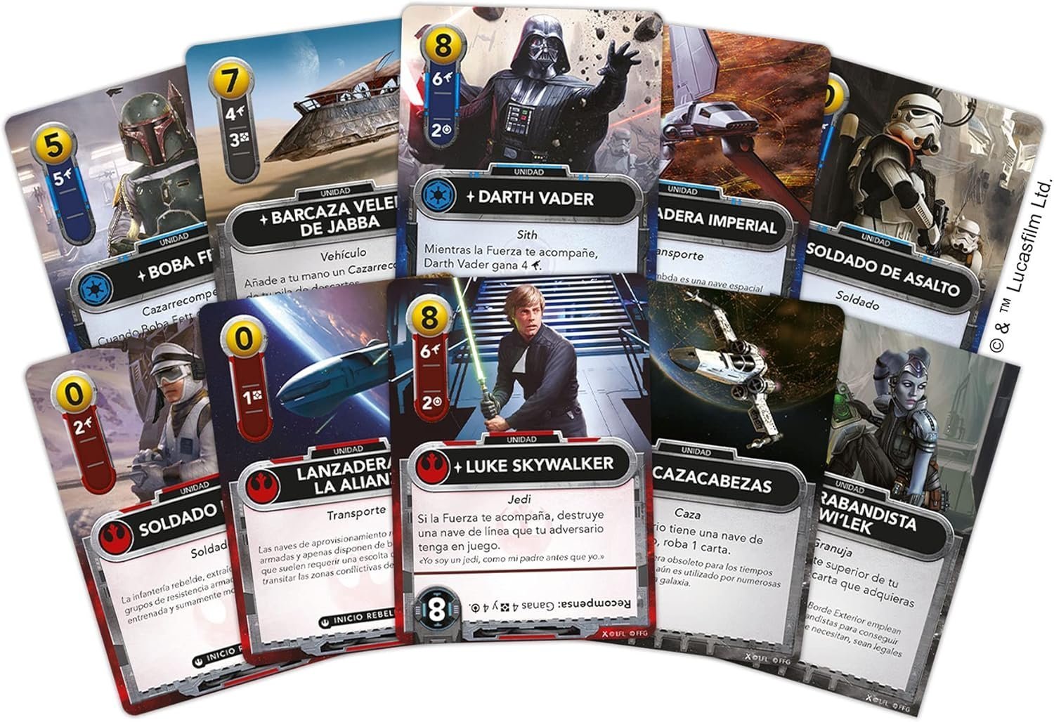 ¡Libra trepidantes batallas estratégicas en Star Wars: The Deckbuilding Game! Con sus sencillas reglas podrás recrear el conflicto entre el Imperio Galáctico y la Alianza Rebelde en una emocionante confrontación directa. ¡Recluta personajes, captura presas para cobrar sus recompensas, utiliza la Fuerza y destruye las bases enemigas!
