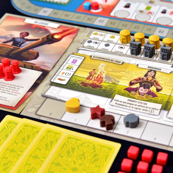 En Tapestry, comienzas desde cero y avanzas por cualquiera de las cuatro ramas de desarrollo (ciencia, tecnología, exploración y militar) para obtener beneficios cada vez mayores. Puedes centrarte en una rama específica o adoptar un enfoque más equilibrado. También mejorarás tus ingresos, construirás tu capital, aprovecharás tus habilidades asimétricas, ganarás puntos de victoria y obtendrás cartas de Tapestry que narrarán la historia de tu civilización.