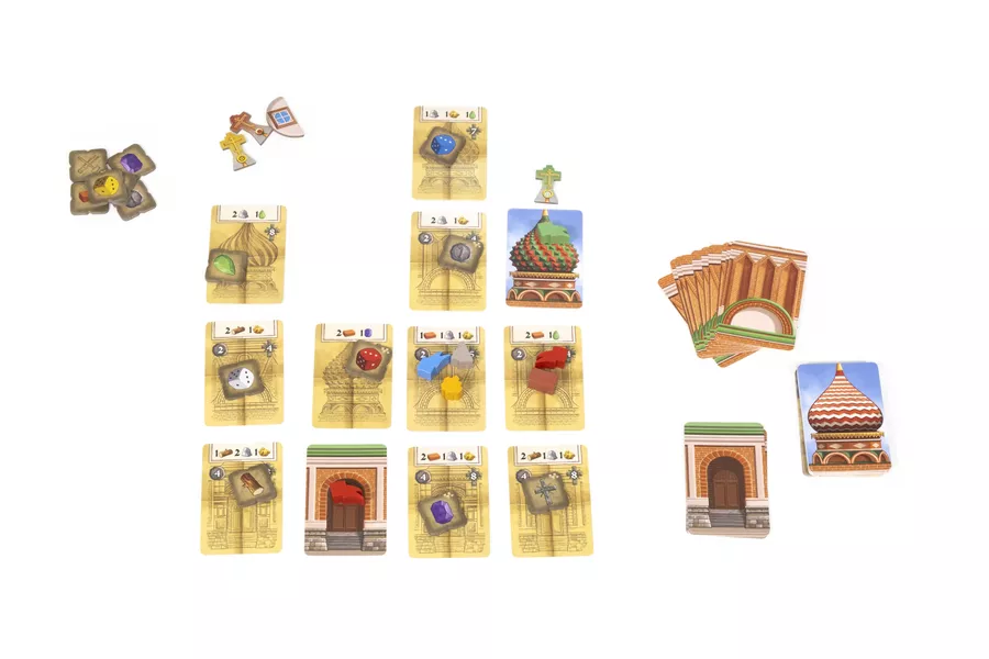 En The Red Cathedral formarás parte de los equipos de arquitectos que construyeron la catedral. Cada jugador construirá diferentes partes del monumento. Teniendo en cuenta la influencia del clero y de los diferentes gremios de la ciudad, intentarás lucirte más que los demás y obtener así el favor del zar.