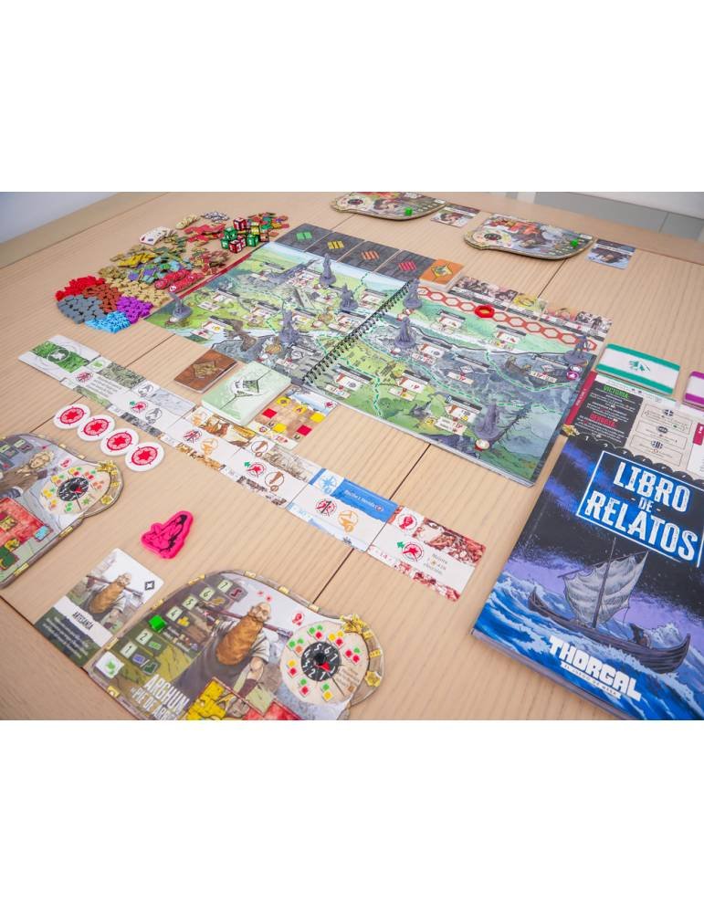 Thorgal: El juego de mesa es un juego cooperativo de aventuras narrativas. Asumiréis los papeles de Thorgal, su esposa Aaricia, su hijo Jolan y Kriss, una guerrera letal, para emprender una serie de peripecias. El juego consta de 7 aventuras independientes, cada una de las cuales dura aproximadamente entre 90 y 120 minutos. Cada partida es una experiencia única, sin campaña ni elementos heredados, lo que significa que puedes jugarla muchas veces con diferentes grupos durante un largo período de tiempo. ¡Cada aventura se desarrolla en un mapa distinto que explorarás mientras cumples tus objetivos! El juego va acompañado de un libro de relatos que contiene descripciones narrativas de los encuentros que protagonizan los personajes en cada aventura.