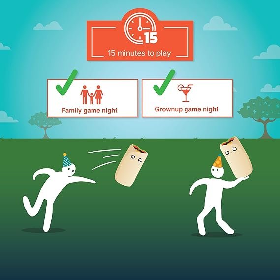 Ya conoces Throw Throw Burrito… ¡Pues ahora prepárate para su versión más extrema! El mismo ritmo frenético y la misma diversión, solo que ahora todos los componentes son mucho más grandes empezando, como no, por dos adorables burritos hinchables con los que protagonizarás los duelos más intensos.