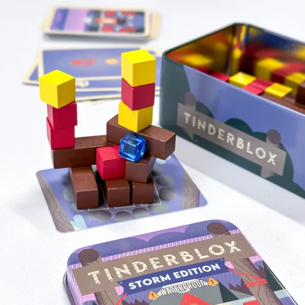 Tinderblox es un juego de destreza divertido y fácil de aprender que viene en una minilata de bolsillo para que siempre estés listo para jugar.