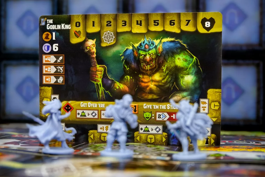 En Tiny Epic Dungeons, el objetivo principal parece sencillo: encontrar la guarida del jefe dentro de la mazmorra y derrotarlo en un combate épico. Sin embargo, la oscuridad está llena de peligros, y el tiempo corre en tu contra. El juego se divide en dos actos. En el primer acto, los jugadores exploran la mazmorra, que se construye de manera aleatoria a medida que se revelan cartas. Este tablero modular asegura que cada partida sea única, ofreciendo una experiencia fresca y dinámica en cada nueva partida.