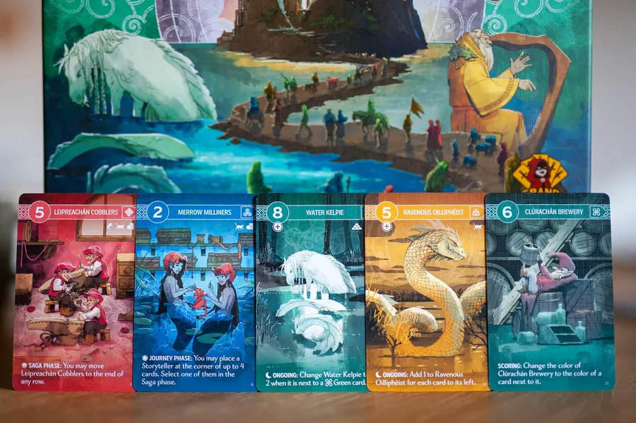Controlar los tiempos en Tír na nÓg es clave, ya que puede que dos jugadores necesiten la misma carta del mercado central… Pero solo uno se la podrá quedar. Sin embargo, hay maneras distintas de puntuar, de modo que hay muchas combinaciones al alcance de los jugadores. ¿Preparados para escribir la saga más épica que perdure para siempre?