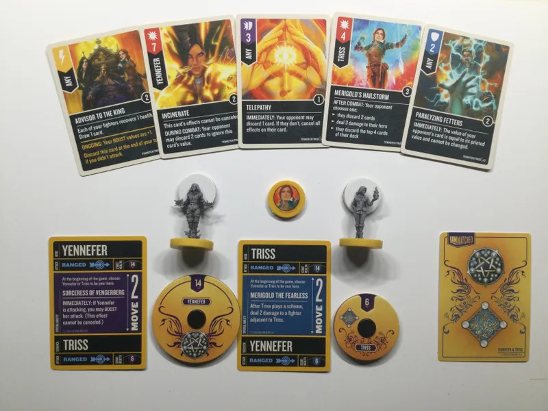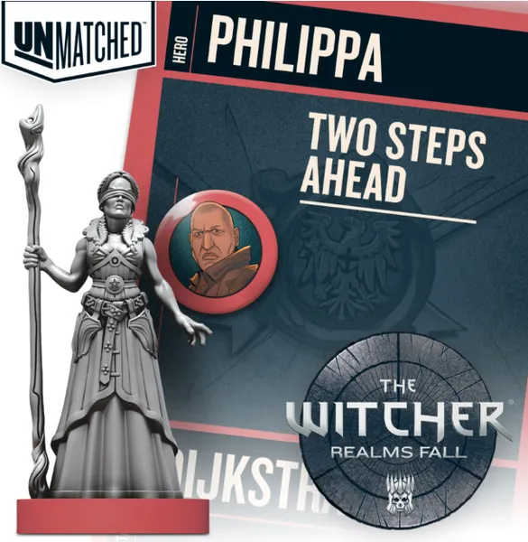 Unmatched es un juego de lucha con miniaturas muy asimétrico para dos o cuatro jugadores. Unmatched: Witcher- Realms Fall presenta tres personajes y dos campos de batalla de la serie Witcher.
