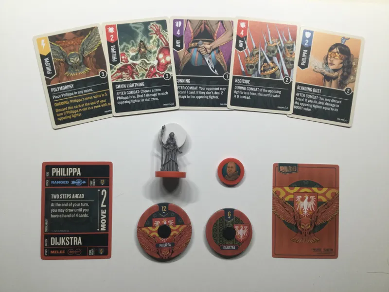 Unmatched es un juego de lucha con miniaturas muy asimétrico para dos o cuatro jugadores. Cada héroe está representado por una baraja única diseñada para evocar su estilo y leyenda. El movimiento táctico y la resolución de combates sin suerte crean una experiencia de juego única que recompensa la experiencia, pero justo cuando dominas un conjunto, llegan nuevos héroes para brindarte nuevos enfrentamientos.