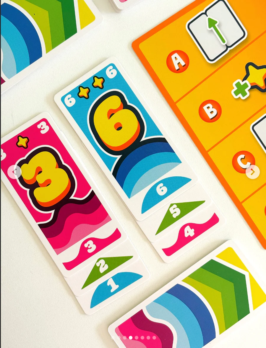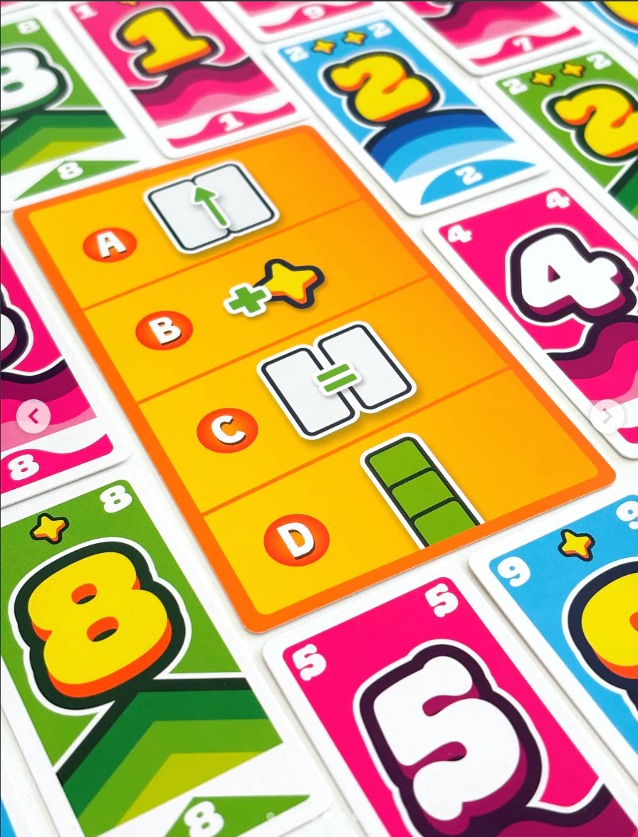 Cada jugador comienza con ocho cartas en la mano, de tres colores y con valores del 1 al 9. En cada ronda, los jugadores revelan simultáneamente dos cartas que forman un número de dos dígitos, colocándolas sobre las cartas ya jugadas para crear dos columnas. La única regla es que el nuevo número debe ser mayor que el anterior. Quien no logre formar un número mayor queda eliminado.